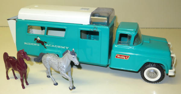 pretty good original, paint is about 85%, includes 2 plastic horses that might be original and a set of old aluminum horses for display