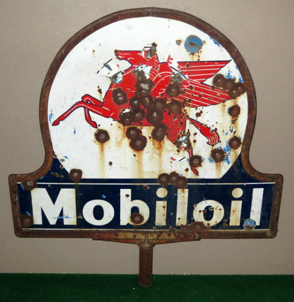 lots of bullet holes and wear, no base, as-is, one side was painted over