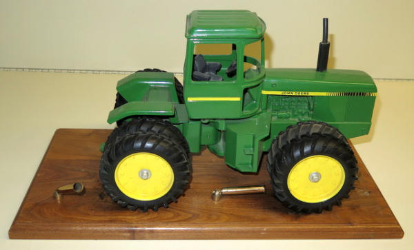 1/16th scale Tractor that was used by a Dealer, mounted to a wood base with pen holders, mounting is loose, no name plate, light wear