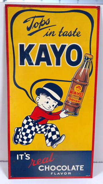 great color and graphics! Made by Donaldson, 27"x14", there's a different variation of this sign later in the auction, Marked KMS-8