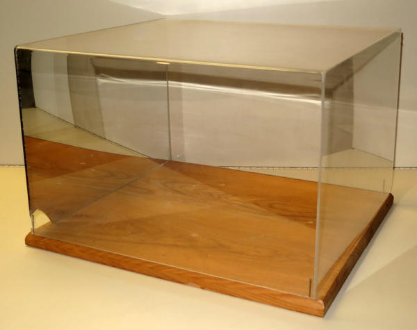 has a small piece broken off the mirrored back, 19"x13"x14", some wear