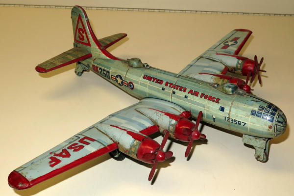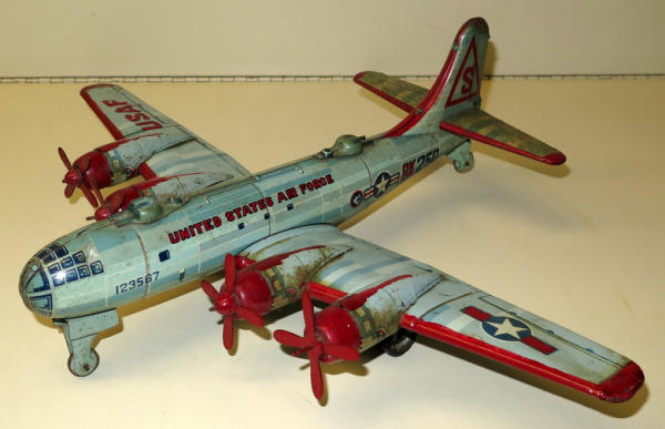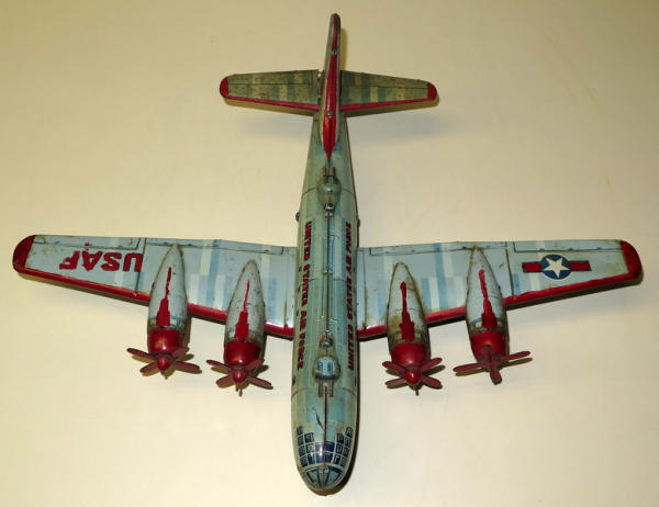 19" wingspan, 15" long, the red on the engines was repainted along time ago, has quite abit of general wear, might clean up with some work
