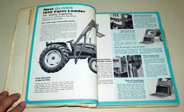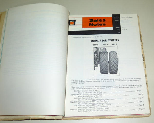 about 1" thick of material, basically a bound set of brochures & info sheets to teach salesman about the new equipment, nice piece, light wear