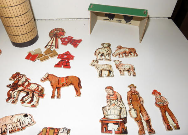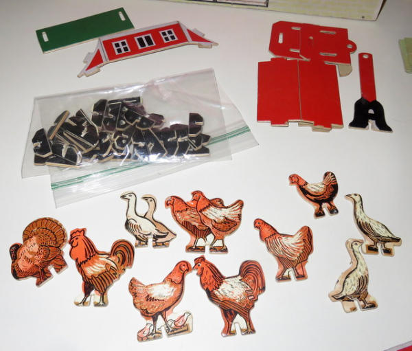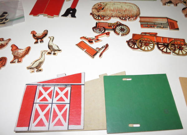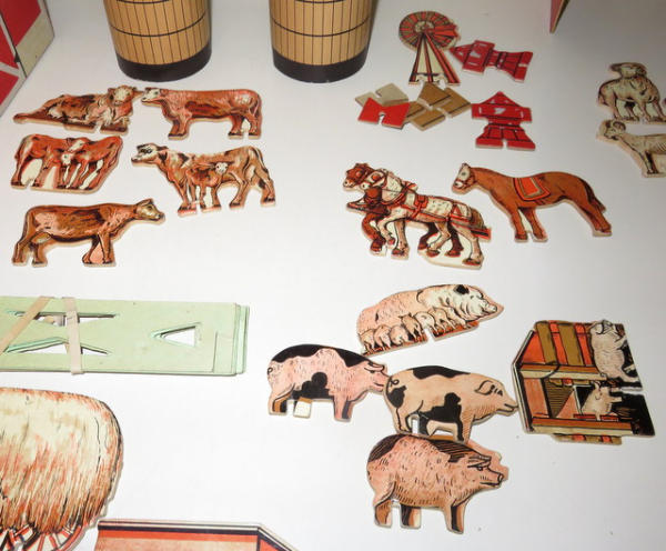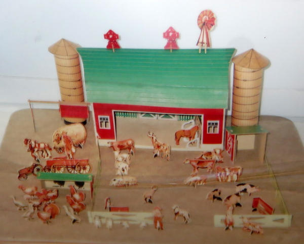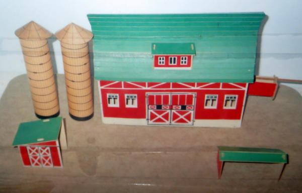 64 pieces total, believe to be complete and nice, no box, barn is 17"x9"