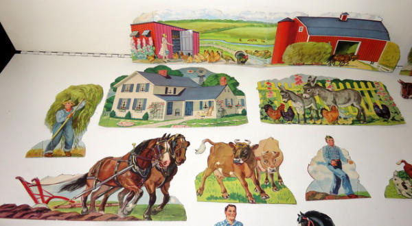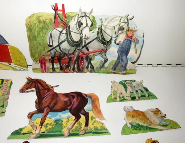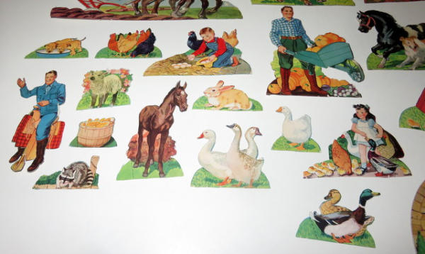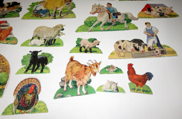 light cardboard animals & figurines, no barn, paper punch-out set, no box