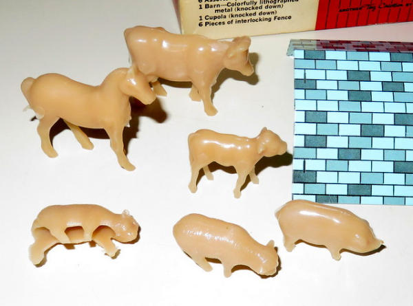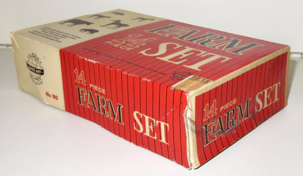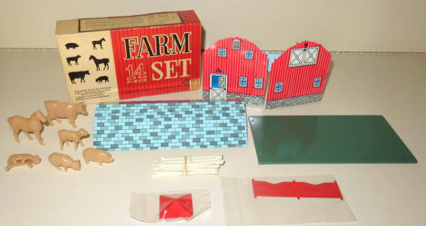 nice little tin set, box is 8.5"x5", near mint box and toys