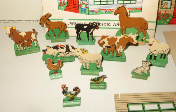 NIB, box is 12"x11", animals are heavy cardboard, box has light wear, animals are nice