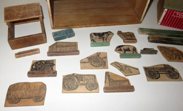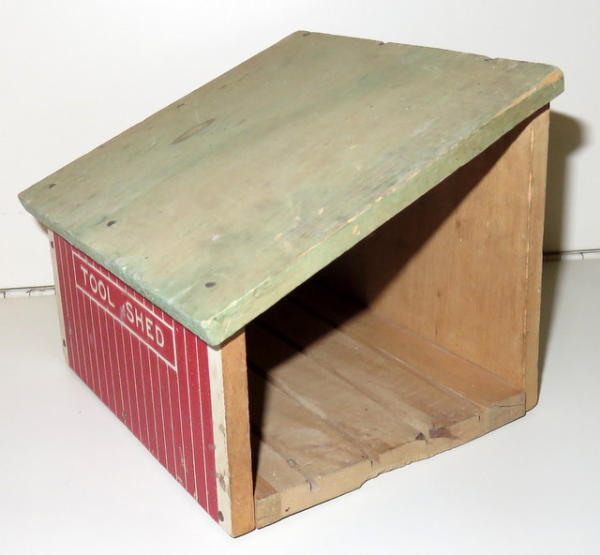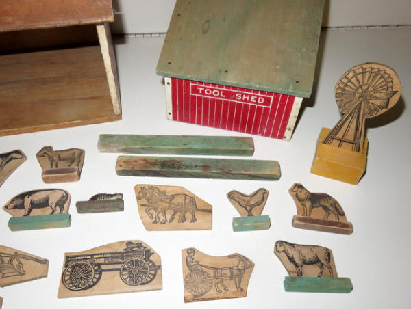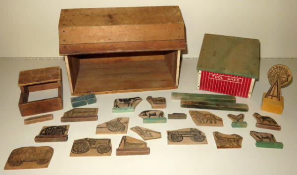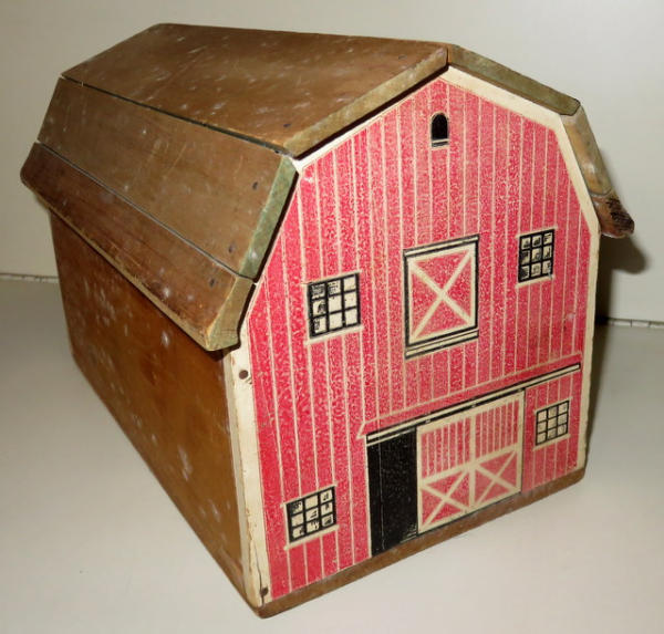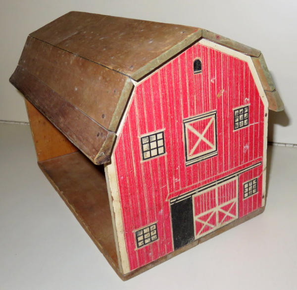 not sure on the maker, toy has quite abit of play wear, but solid for the age, barn is 13"x8.5"