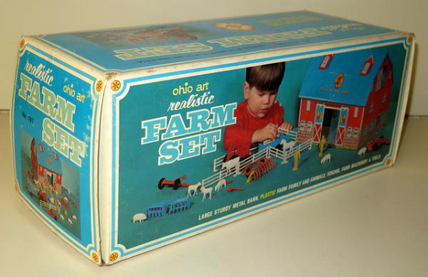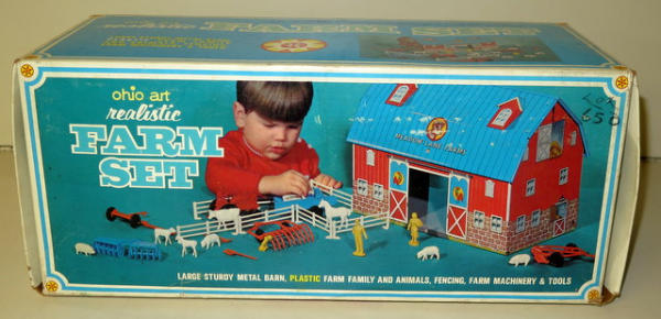 Meadow Lane Farms Blue roof barn with lots of animals & accessories, NIB, box has some wear