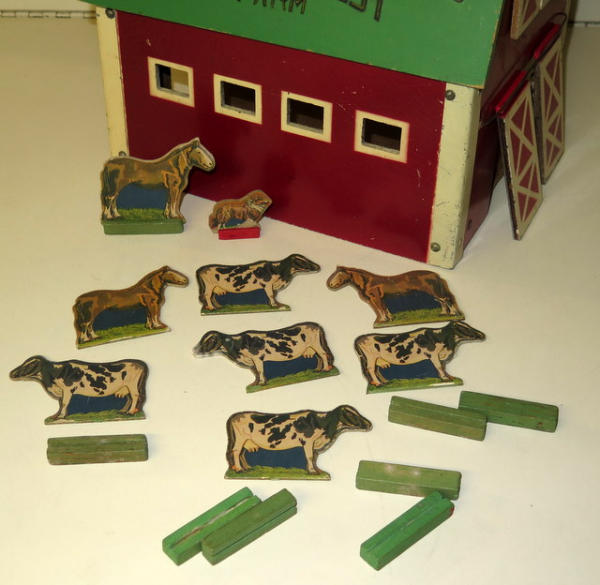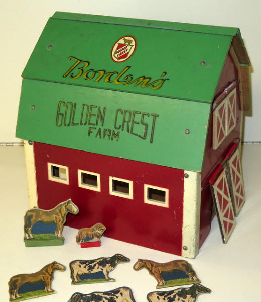 Barn is 9"x11", includes a few accessories, some normal wear, nice advertising
