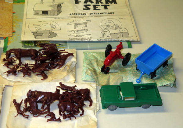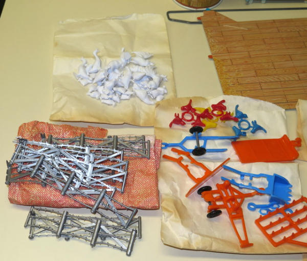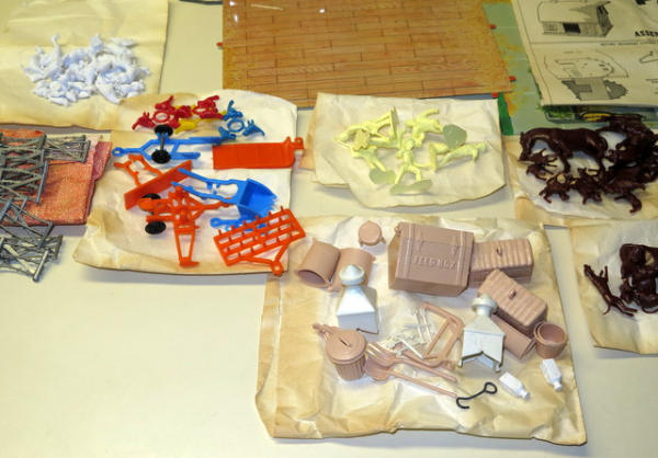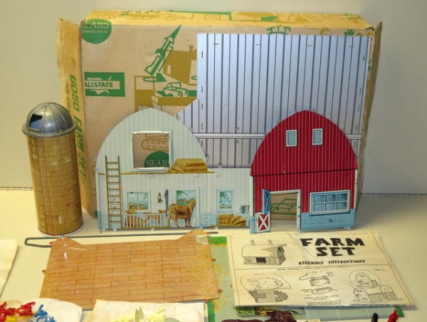 never played with, pieces are still wrapped in factory wrapping, box has some general wear, box measures 15"x20"