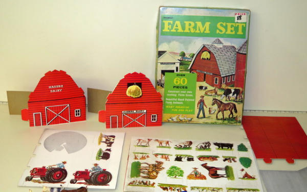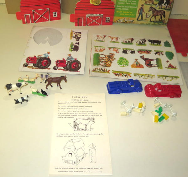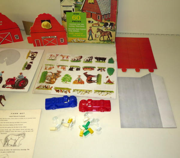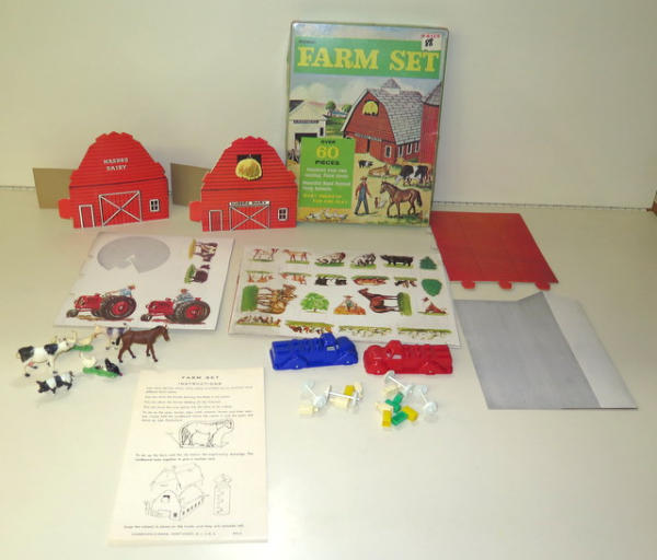 plastic toys and paper punch out pieces, never played with, box measures 12"x9"