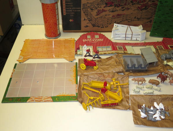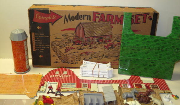 Happi Time Red Barn w/ Green Roof, large set, box has some tape on the corners, box measures 14"x27"