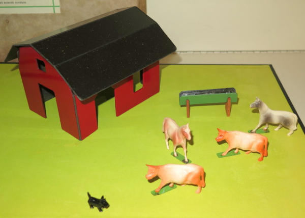 unique set that used magnets from the bottom to move the pieces around, box has some tape on the edges, box is about 14"x21"