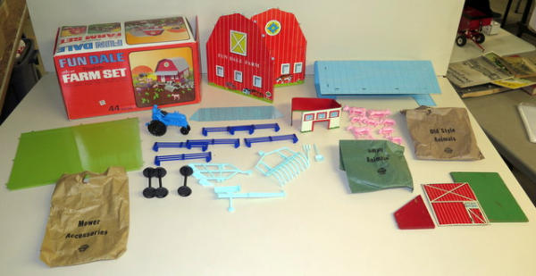 NIB, never used, box is 13" long, 44pc Set w/ barn, animals and plastic implements