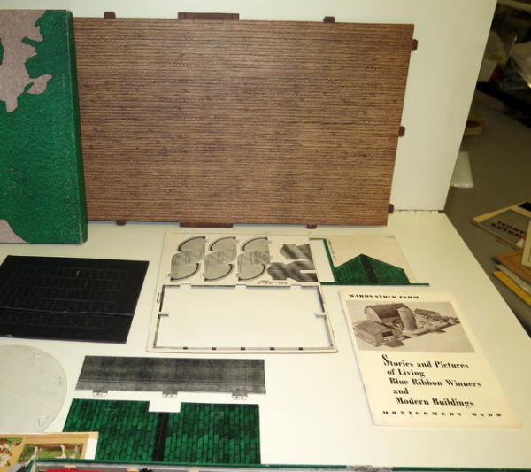 never set up, box was used as the packing box, has some wear, box measures 21"x13"