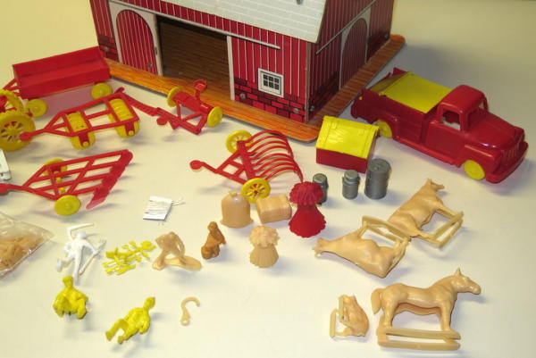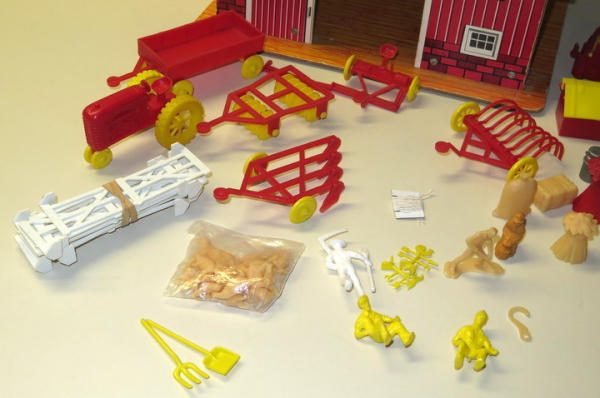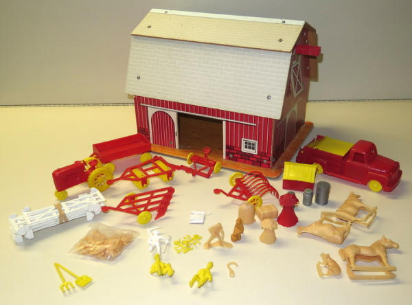 barn is 13" long, 7.5" wide, nice original set
