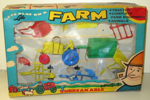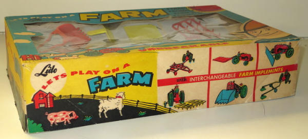 unique set, box measures 16"x10", has some wear, toys are mint, colorful set