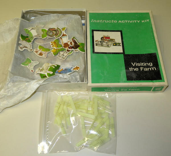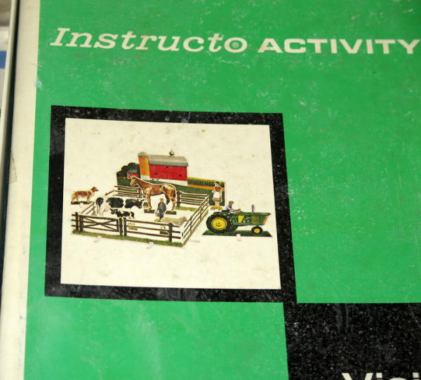 NIB, cardboard cut-out toys, tractor resembles a 10/20-series JD tractor, box measures 11.5"x9"