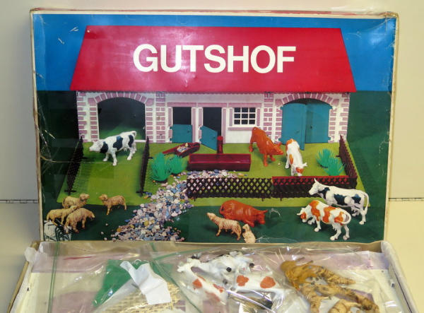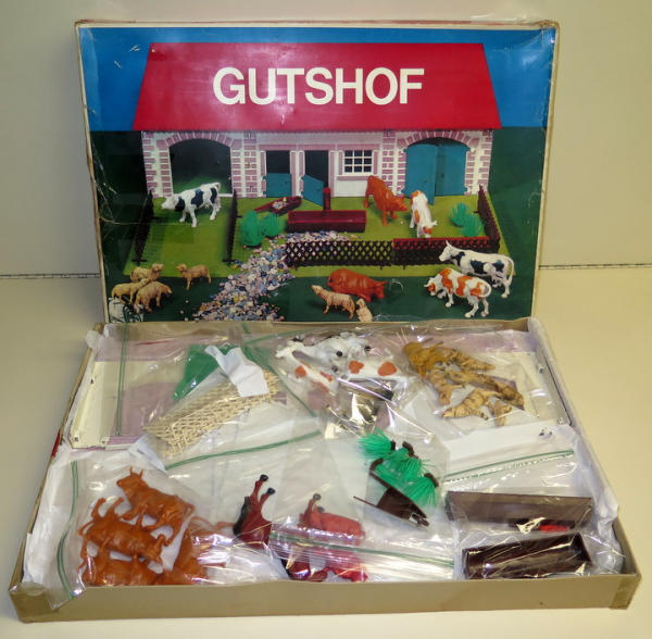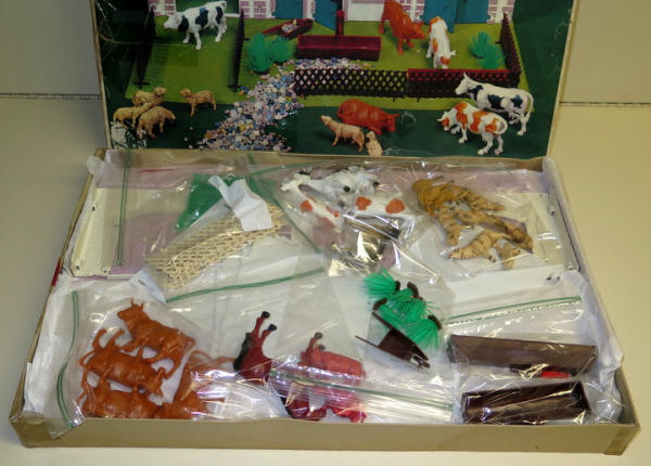 plastic toys, box is 15"x22" and has some tape and wear, toys are nice