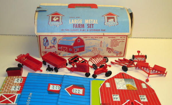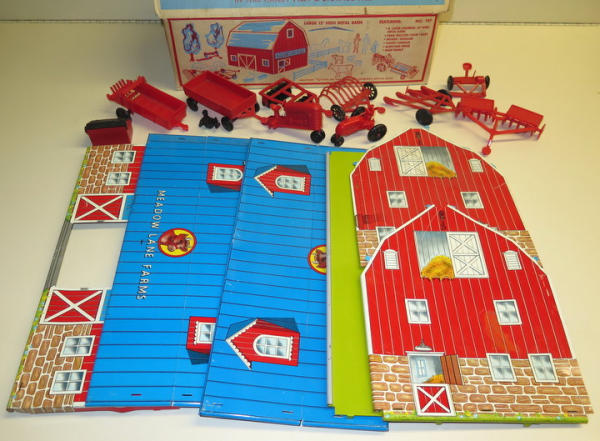 unique box, barn is disassembled but ahs some wear, box is 17" long