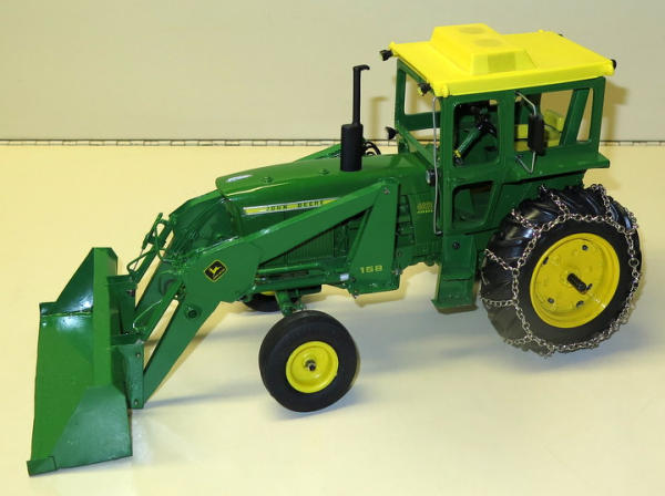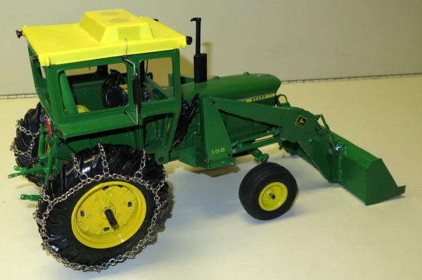 Ertl Toy customized with 3pt, tire chains, lights, mirrors and more; Loader is completely scratch built and super sharp, nice piece