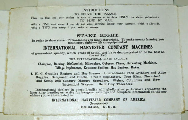 folded about the size of a postcard, early 1900's advertisement from IH, unique piece of Black Americana