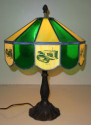 missing one brass cap to hold the shade on, should be able to get a replacement, otherwise looks good; no shipping, too fragile without the original box
