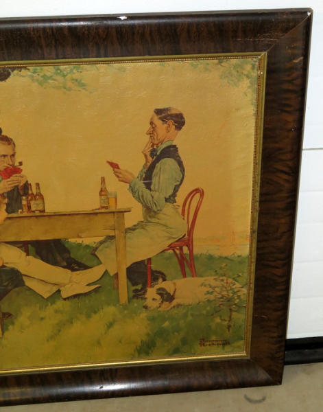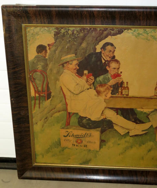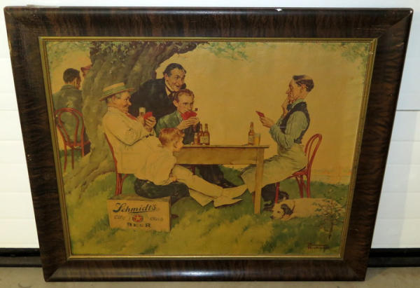 34"x40", printed on canvas to give it a painting look, a little yellow from hanging in a bar for many years, but a great piece for the Schmidt Collector!