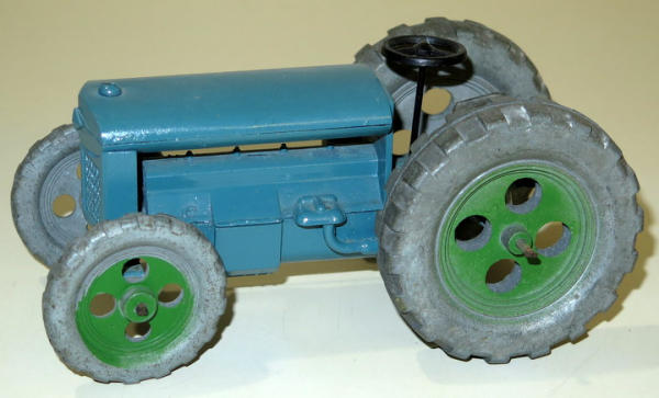 6.5" long, close to 1/16th scale, metal wheels, a foreign toy I have never seen before, looks good