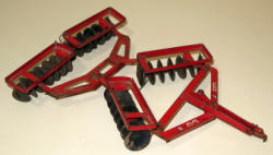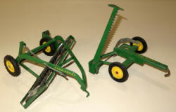1/16th scale, rake is a repainted Tru-Scale that is an average job, Mower needs restoration, both to go