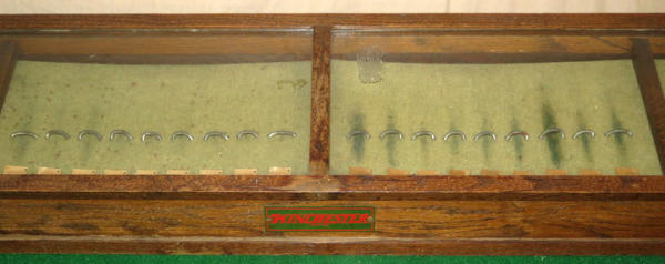 66" long, 10.5" showcase front, has several little "Winchester" Price tags, no knives included, great piece