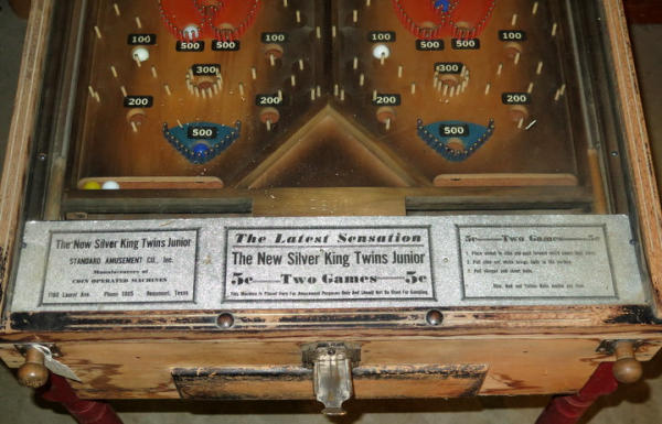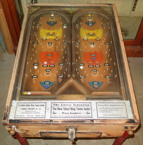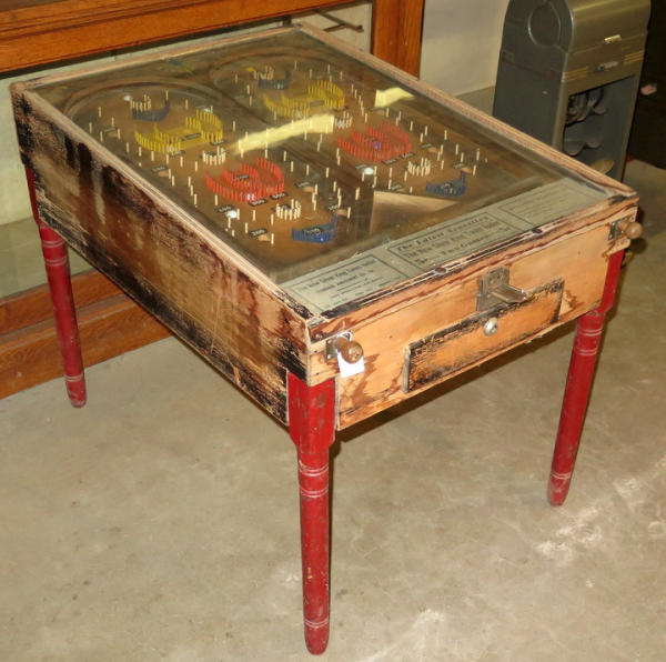 unique, child size, 24"x33" playing surface, stands 26" tall, case is worn, but original, works