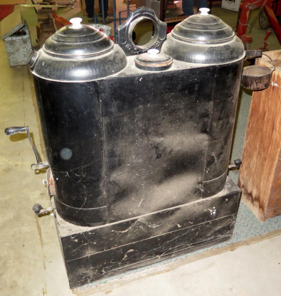 Made of Tin, made to hold the Flour, Sugar, Coffee and everything else, very complete, probably an old repaint, 42" tall, 36" wide, rare piece