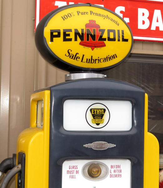 nicely restore, has sat outside, but should polish up nice, includes a reproduction globe, nice pump