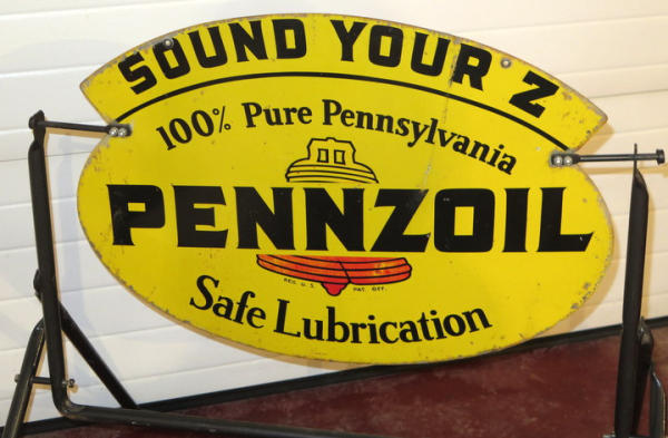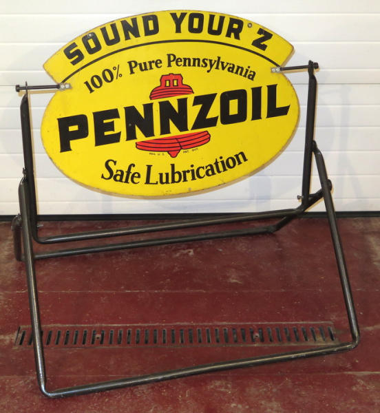 Stand might have been repainted, sign is dated 1962, 31"x21" sign, one side is pretty good, reverse side has some fading and general edge rust