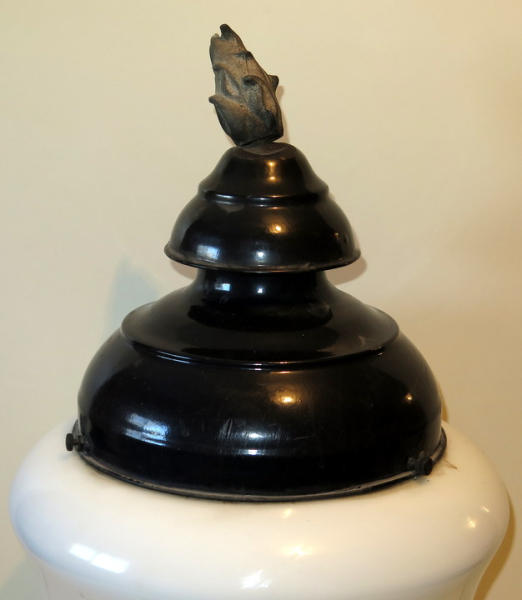 about 22" tall overall, base is 7 3/4" across, nice old original, neat piece