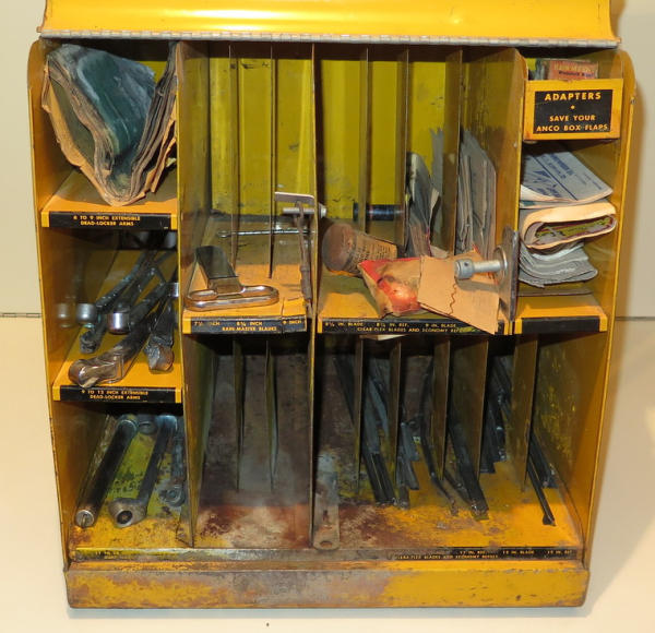 pretty heavy wear, 15"x16"x12", includes some blades and supplies