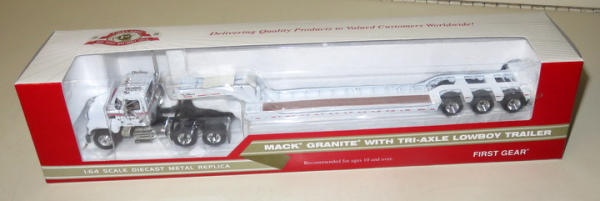 Huge Online Only Farm Toy & Diecast Auction 15 Ohio Street, Wakonda, SD 57073 1,000+ Pieces! Farm Toys, American Muscle Cars, and much more! 1/8th to 1/64th and everything in-between! All from the Chaney Gillham Collection of North Dakota. Catalog | Terms of Auction | Print Catalog Catalog | Terms Back to Catalog #107 – 1/64th--1st Gear MACK Granite w/ Tri-Axle Lowboy Trailer--White NIB More Details NIB Location: 15 Ohio Street, Wakonda SD, 57073 High Bid: $50.00 – ao64 bidding history Bidding has closed on this lot Back to Catalog