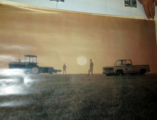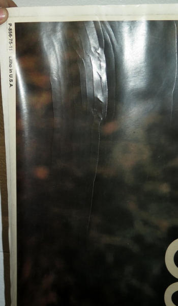a little bigger than 3'x4', has some light wear, neat looking poster