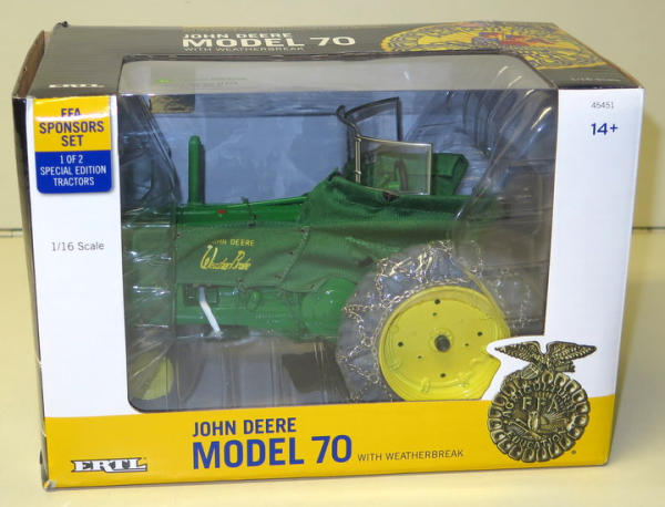 Online Only Farm Toy Estate Auction 15 Ohio Street, Wakonda, SD 57073 Over 500 pieces of nearly all John Deere! Super clean and nearly everything is boxed! The Norm Schrier Estate of Manson, IA. This is the 2nd and Final auction for this estate. Catalog | Terms of Auction | Print Catalog Catalog | Terms Back to Catalog #180 – JD 70 w/ Weatherbreak & Chains FFA Edition NIB More Details NIB Location: 15 Ohio Street, Wakonda SD, 57073 High Bid: $85.00 – gooimielies bidding history Bidding has closed on this lot Back to Catalog