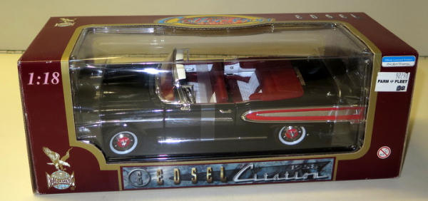 Large Online Only Farm Toy & Diecast Auction 15 Ohio Street, Wakonda, SD 57073 Great mix of Farm Toys--New & Old! Also nearly 100 1/18th Scale American Muscle Cars, Classic Cars, Farm Memorabilia & more! Bid now! Catalog | Terms of Auction | Print Catalog Catalog | Terms Back to Catalog #211 – 1/18th--1958 Edsel Convertible--Black NIB More Details NIB Location: 15 Ohio Street, Wakonda SD, 57073 High Bid: $27.50 – laddtoys bidding history Bidding has closed on this lot Back to Catalog