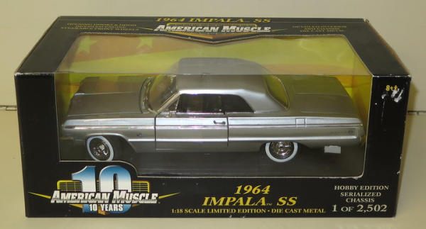 Large Online Only Farm Toy & Diecast Auction 15 Ohio Street, Wakonda, SD 57073 Great mix of Farm Toys--New & Old! Also nearly 100 1/18th Scale American Muscle Cars, Classic Cars, Farm Memorabilia & more! Bid now! Catalog | Terms of Auction | Print Catalog Catalog | Terms Back to Catalog #250 – 1/18th--1964 Chevy Impala SS--Silver NIB More Details NIB Location: 15 Ohio Street, Wakonda SD, 57073 High Bid: $55.00 – jzvt25 bidding history Bidding has closed on this lot Back to Catalog