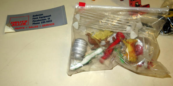Summer Online Only Farm Toy Auction 15 Ohio Street, Wakonda, SD 57073 Lots of 1/64th Scale, Farm Toys, Diecast Vehicles and more! Old, New & Everything in between! Catalog | Terms of Auction | Print Catalog Catalog | Terms Back to Catalog #484 – Box Lot of Toy Parts--JD Combine Head, wheels, and other misc. all to go More Details all to go Location: 15 Ohio Street, Wakonda SD, 57073 High Bid: $4.50 – ao64 bidding history Bidding has closed on this lot Back to Catalog