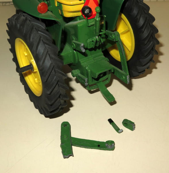Ertl Toy that has been customized with 3pt, lights & levers; 3pt is damaged, needs some work, mild custom piece