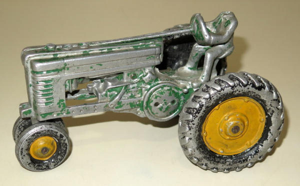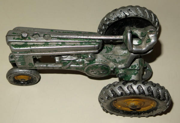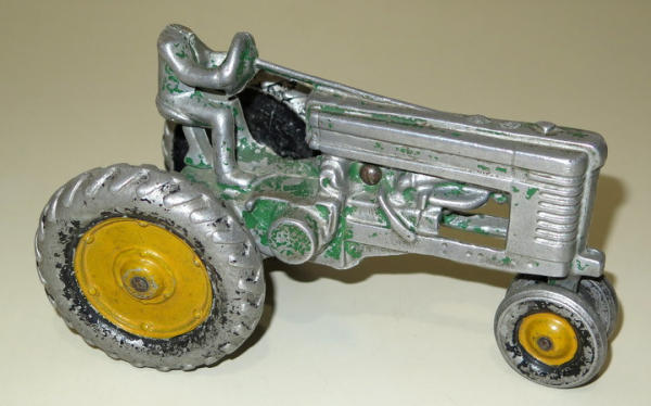 another rare toy, but tough condition, missing the head and both stacks; original paint is weak, but original; variation with no headlights; rare-rare-rare