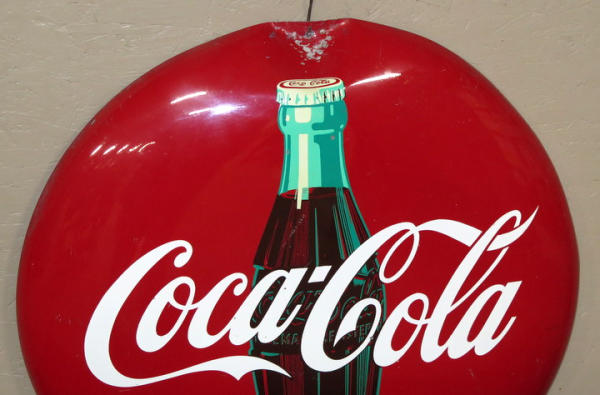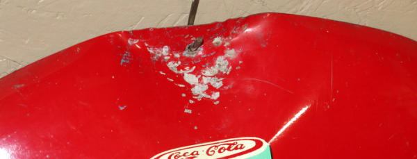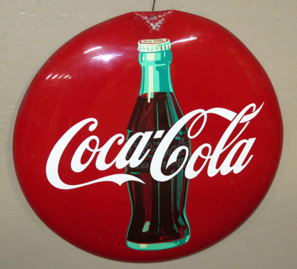 Great color and condition, except for the top was pushed in to hang and has some chips around the mounting hole, nice size button