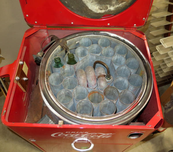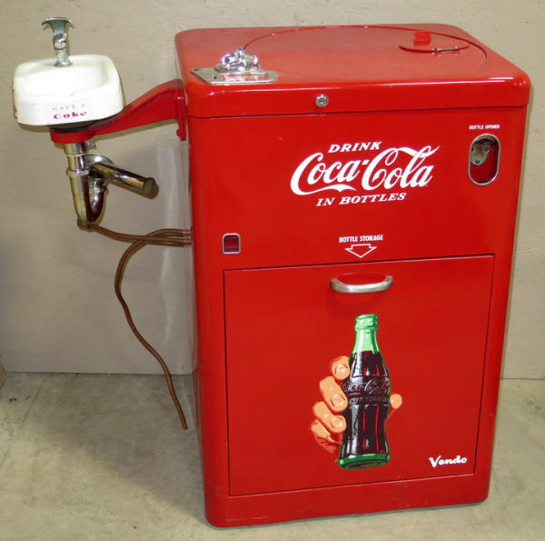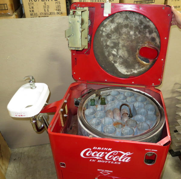 pro-restored and super sharp, compressor and everything works like it should, only a few scuffs from storage and moving, but overall it is show quality on this unique and unusual machine! Heavy, local pickup only in Wakonda, SD for online buyers; measures 36"x24"x20" plus the fountain