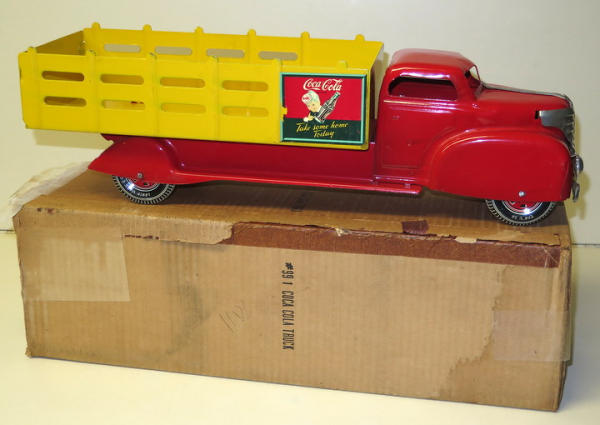 super clean and nice truck, Sprite boy logo, 20" long; box is plain brown box with some letting,; missing one end flap, otherwise box is very good, rare to find in this condition