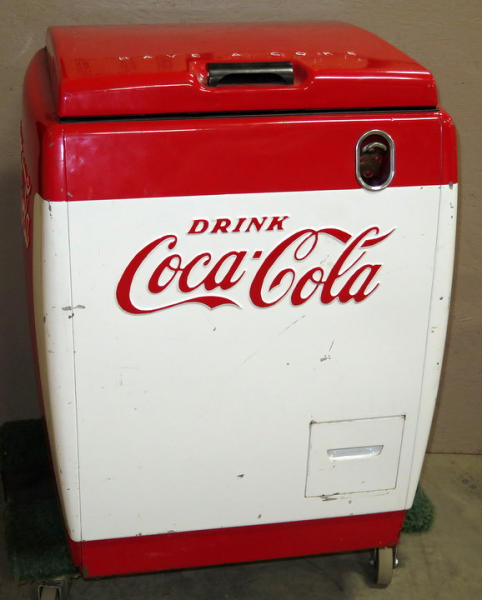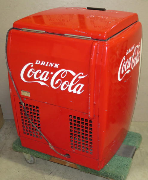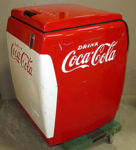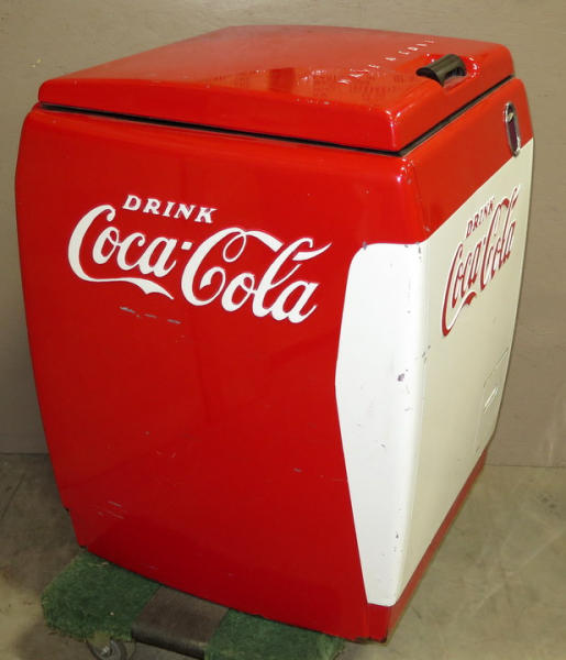 Very nice and clean old original cooler, I don't think this one has been restored, has some normal scuffs and scrapes, lid might have been repainted, but overall I think this is a good original, nice smaller size for any room, measures 26"x26"x36" tall